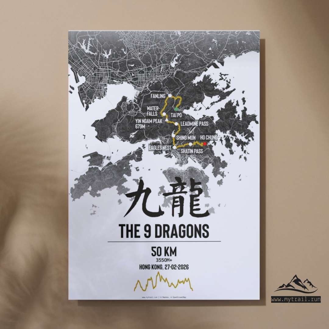 More than just a map, this art print is a visual tribute to one of Asia's most demanding trail races: the 9 Dragons' 50km, a brutal course traversing Hong Kong's infamous dragon-backed peaks.